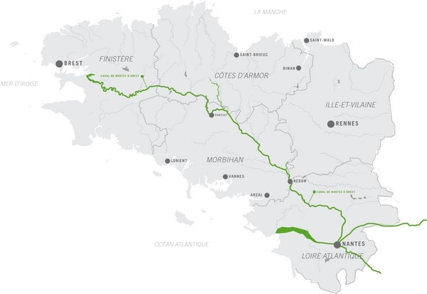 D’une longueur de 360 km environ le canal de Nantes à Brest, relie comme l’indique son nom les villes de Nantes et Brest ou plus exactement de Nord sur Erdre, en Loire Atlantique, à Port Launay dans le Finistère.
